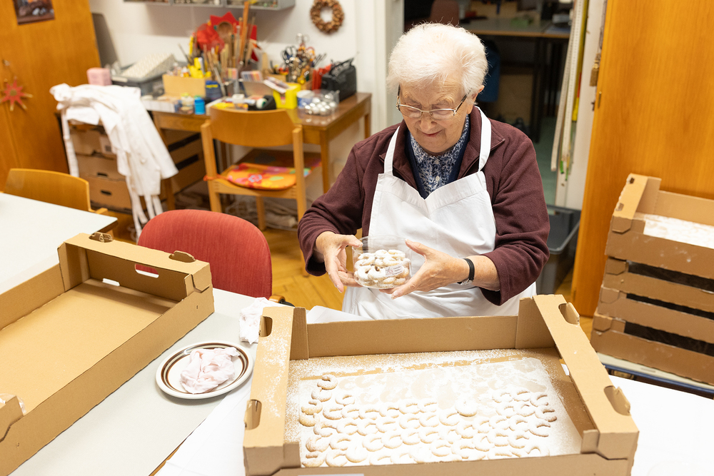 Jährlich backen die Schwestern der Caritas Socialis rund 1,5 Tonnen Weihnachtsgebäck, dass sie auf dem Weihnachtsmarkt zu Gunsten des Caritas Socialis Haus für Mutter und Kinder verkaufen. Wir waren bei den Vorbereitungen dabei.